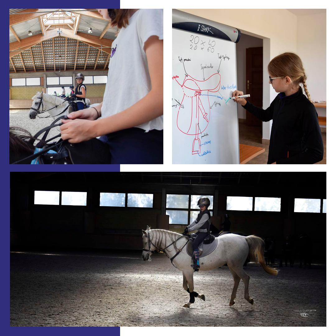 - zapoznać się z teorią dotyczącą jazdy konnej – m.in. zasady bezpieczeństwa, zapoznanie się ze sprzętem jeździeckim dla jeźdźca i konia