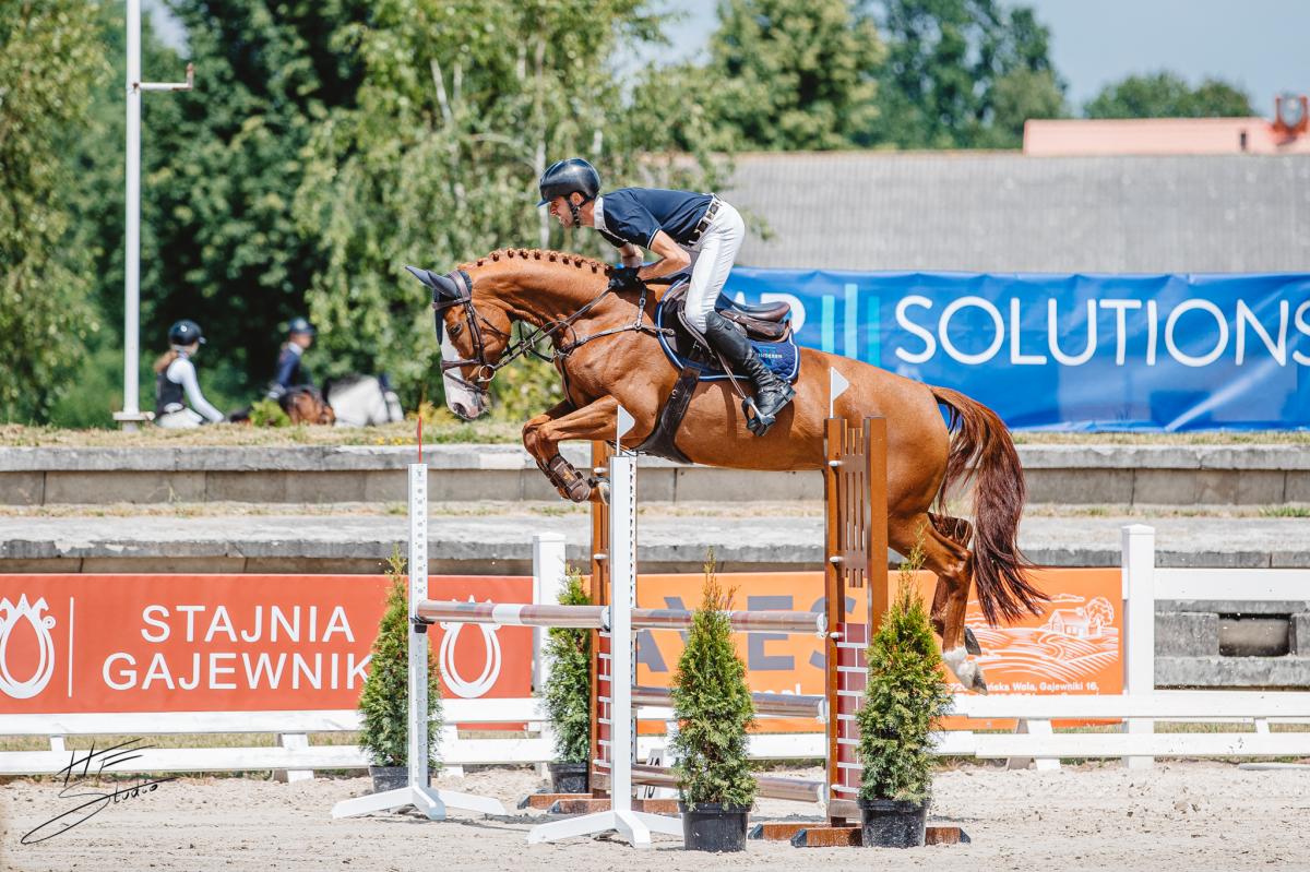 Podczas ostatniego weekendu nasza młodzież startowała na zawodach ogólnopolskich w Gajewnikach pod Mateuszem Tyszko. W konkursach dla koni 5-letnich absolutnie bezkonkurencyjna okazała się Warka (Aganix du Seigneur x Warrant), która z łatwością wygrała wszystkie 3-dni zmagań na wysokości 115 cm - 120 cm. Kwalifikacje do MPMK zdobył również 4-letni ogier Caro (Grandorado x Elvaro), który z notą 8.5 za styl skoku zwyciężył w swoim konkursie.