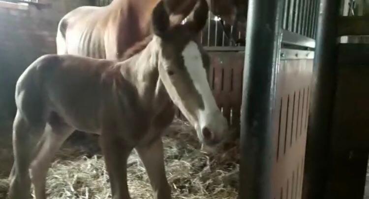 Wczoraj Colonia (Arezzo VDL x Action Breaker) urodziła swojego pierwszego źrebaka. Jest to śliczny i bardzo ciekawski kasztanowaty ogierek po Chacfly PS (Chacco Blue x Sir Shutterfly).