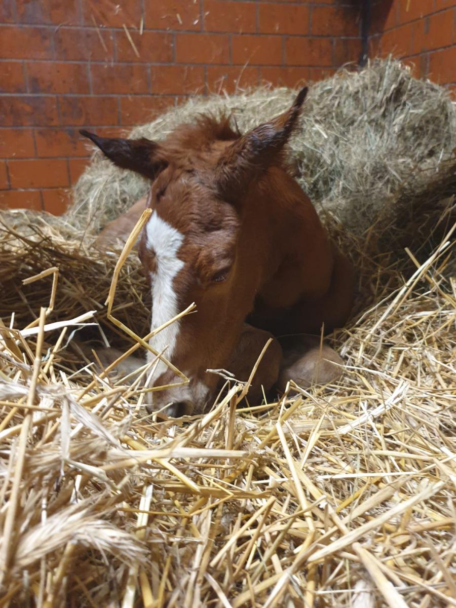 We wtorkowy wieczór na świat przyszedł pierwszy w tym sezonie źrebak- uroczy kasztanowaty ogierek po Falaise de Muze (Wandor vd Mispelaere x Nabab de Reve) od Cory (Action Breaker x Coriano Z). Zaskoczył nas wszystkich, rodząc się dwa tygodnie przed terminem.