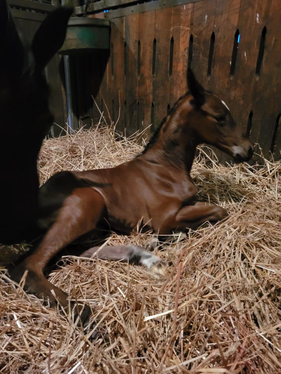 Kolejnym źrebakiem urodzonym w tym sezonie jest wyjątkowo urodziwa klaczka po Grand Slam (Cardento x Heartbreaker). Ten wyjątkowy ogier w swojej karierze najpierw zachwycił komisję KWPN, uzyskując wbitną notę 90 punktów, która do dziś pozostała niepobita. Następnie z sukcesami startował w najważniejszych konukrsach na świecie. Aktualnie ogier ten zyskuje coraz większą popularnosć jako reproduktor, ponieważ jego potomstwo święci zwycięstwa w konkursach dla młodych koni.
