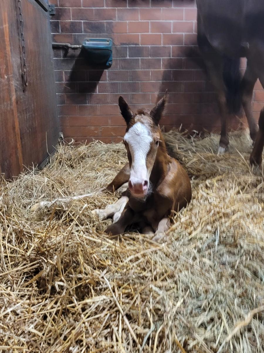 W ostatnią niedzielę powitaliśmy drugiego źrebaka od Larine (Conthargos x Canabis Z). Ojcem tej klaczki został zasłużony w naszej hodowli Elvaro (Calvaro x Heartbreaker), który w połączeniu z matką Larine, klaczą Lacrima (Canabis Z x Lawito), dał nam już uczestnika Mistrzostw Świata Młodych Koni oraz czempiona Mistrzostw Polski Młodych Koni i Sportowego Czempionatu Młodych Koni, wałacha Lancelot (Elvaro x Canabis Z).